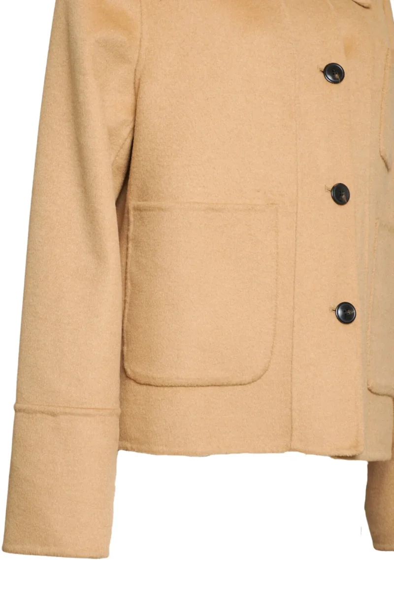 Realizzato in panno di misto lana, è caratterizzato da una texture morbida ed è caratterizzato dalle tasche a pattina con bottoni centrali.