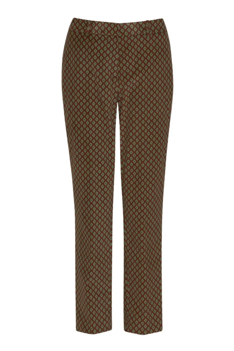 Il pantalone donna 1961 Milano in ciniglia è una scelta ricercata per chi desidera un capo morbido, confortevole e al tempo stesso elegante. La stampa geometrica all over dona personalità al modello, mentre il tessuto in cotone elasticizzato garantisce una piacevole elasticità e una sensazione avvolgente. Le tasche francesi laterali, le tasche a filetto sul retro e i passanti in vita aggiungono un tocco sartoriale, completato dalla chiusura con gancetto e zip che assicura stabilità e pulizia nelle linee.